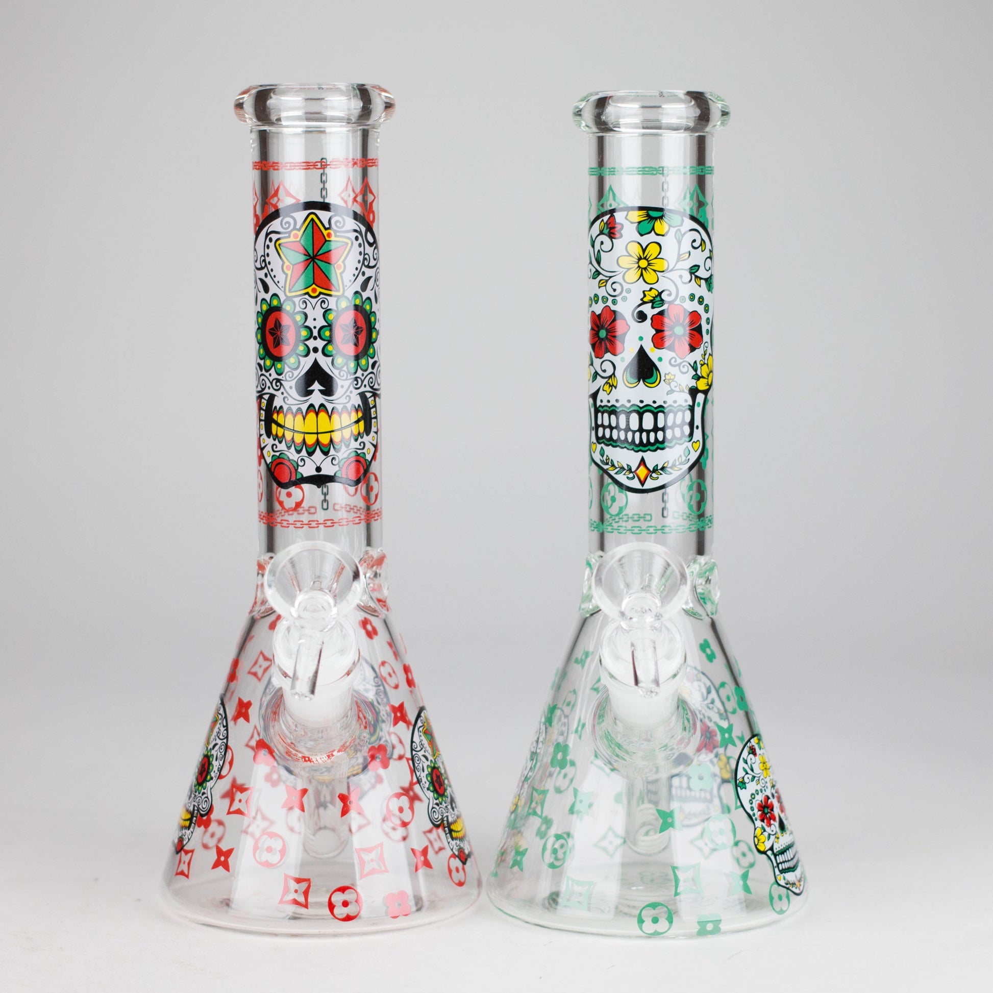 Add some personality to your setup with this 10" Sugar Skull Glass Beaker Bong. Featuring bold, colorful sugar skull artwork, this piece is perfect for anyone who loves unique, eye-catching designs.