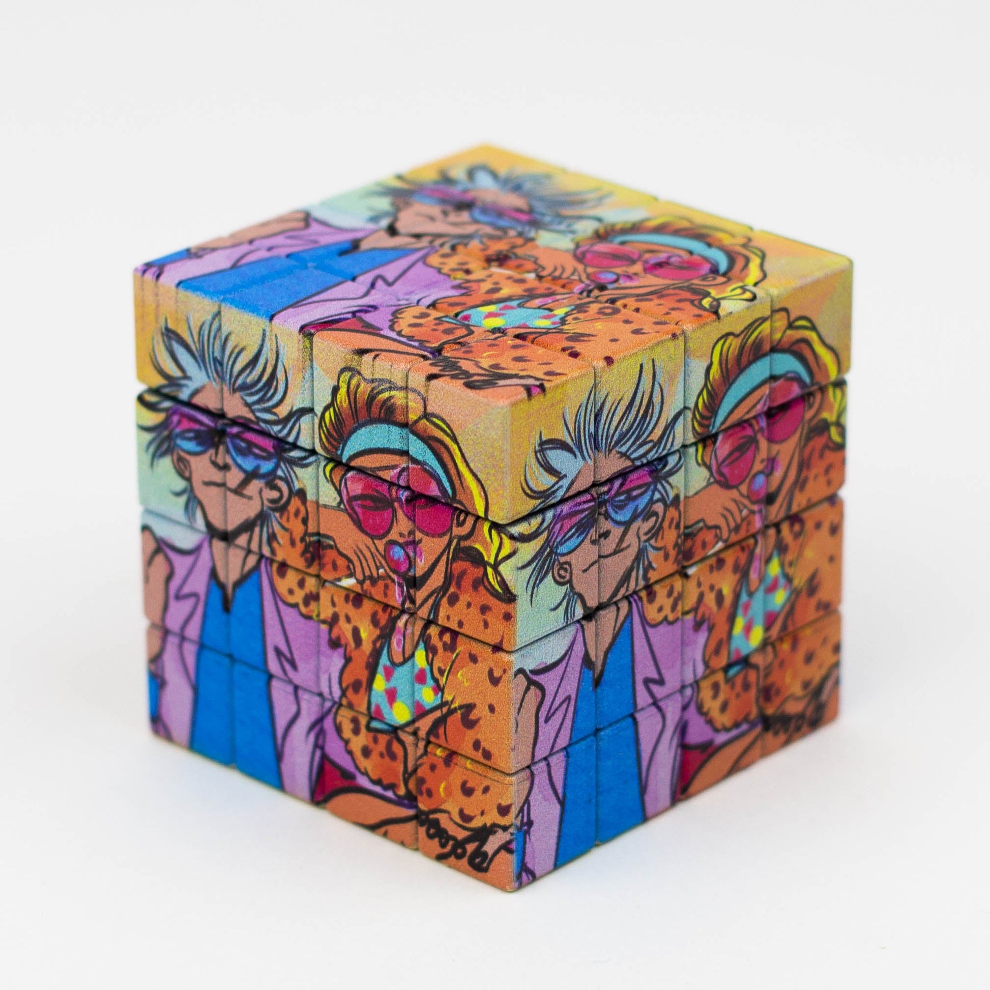 Fashion Cube design with cartoon printed : Classic 4 piece, 3 chamber structure easy use for grinding, storage, and filtration of pollen.New Rubik's Cube design provides increased quality relaxing.