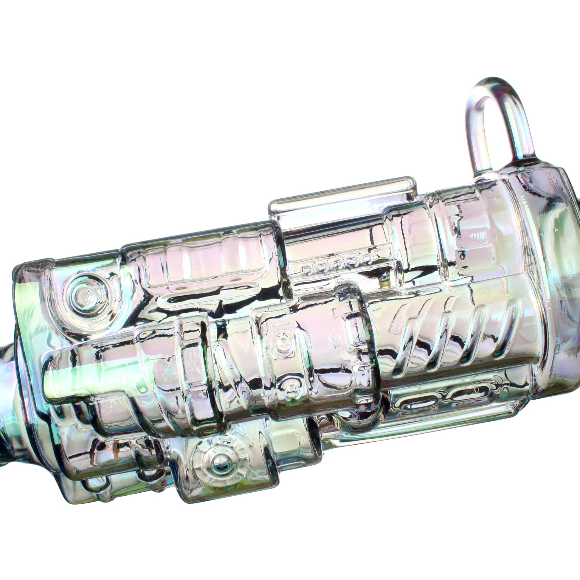 Make a bold statement with this show-stopping 24-inch glass Gatling gun water pipe. Crafted with incredible attention to detail, this piece is a true fusion of art and functionality. Its futuristic gun-inspired design is made from premium glass, available in 4 assorted iridescent colours, ensuring each one stands out as a centerpiece in any collection.