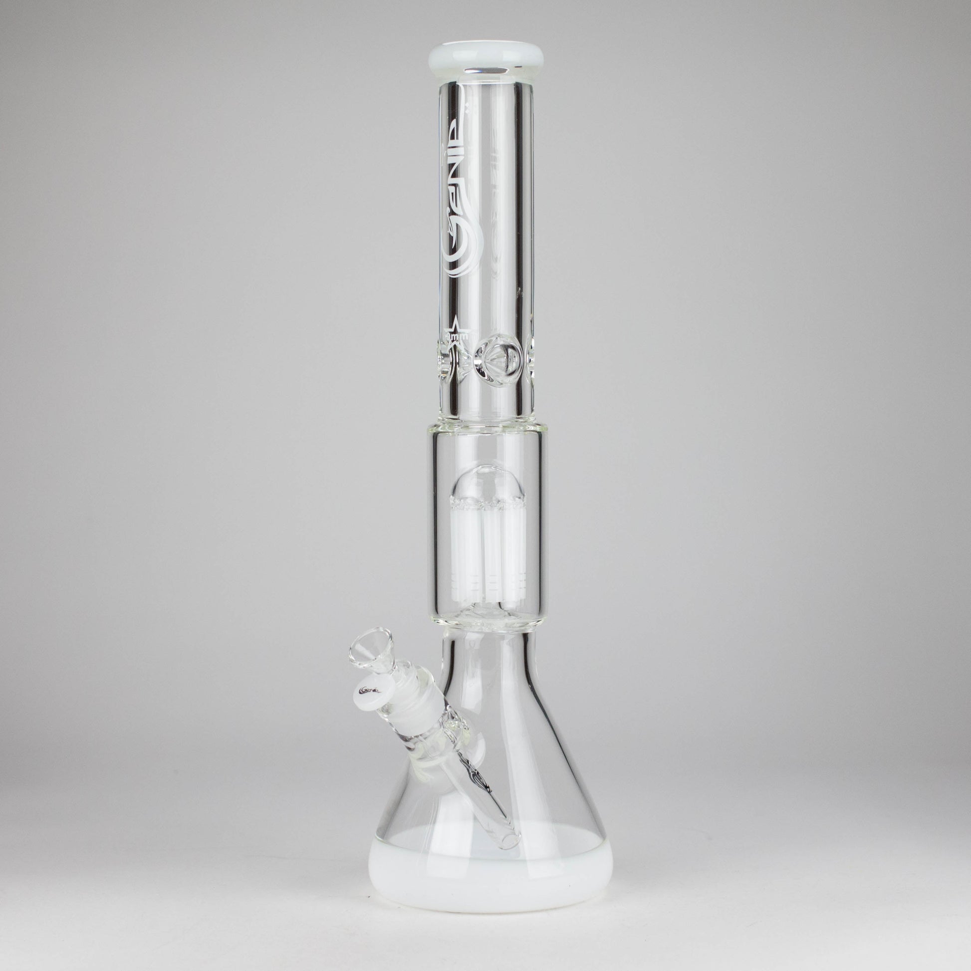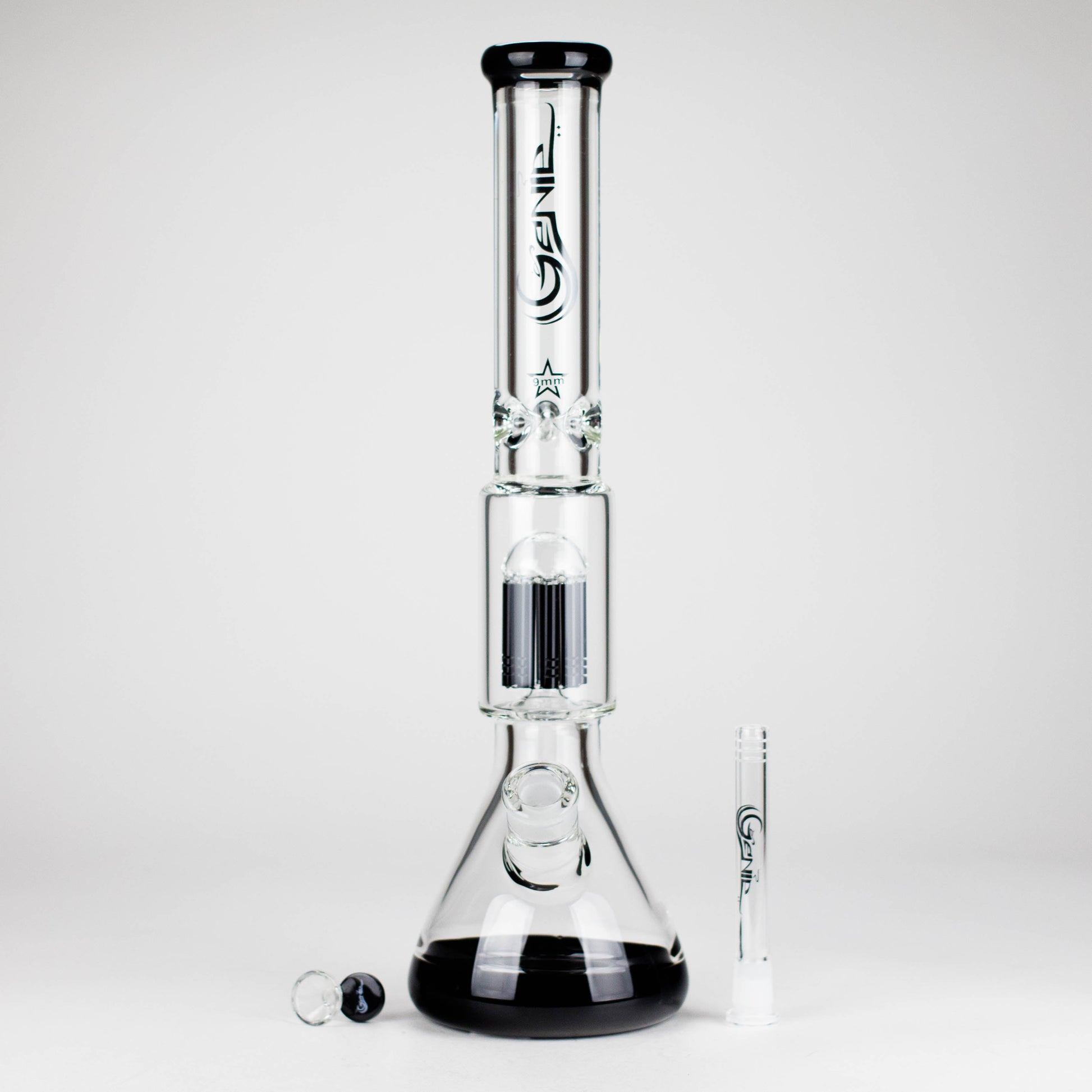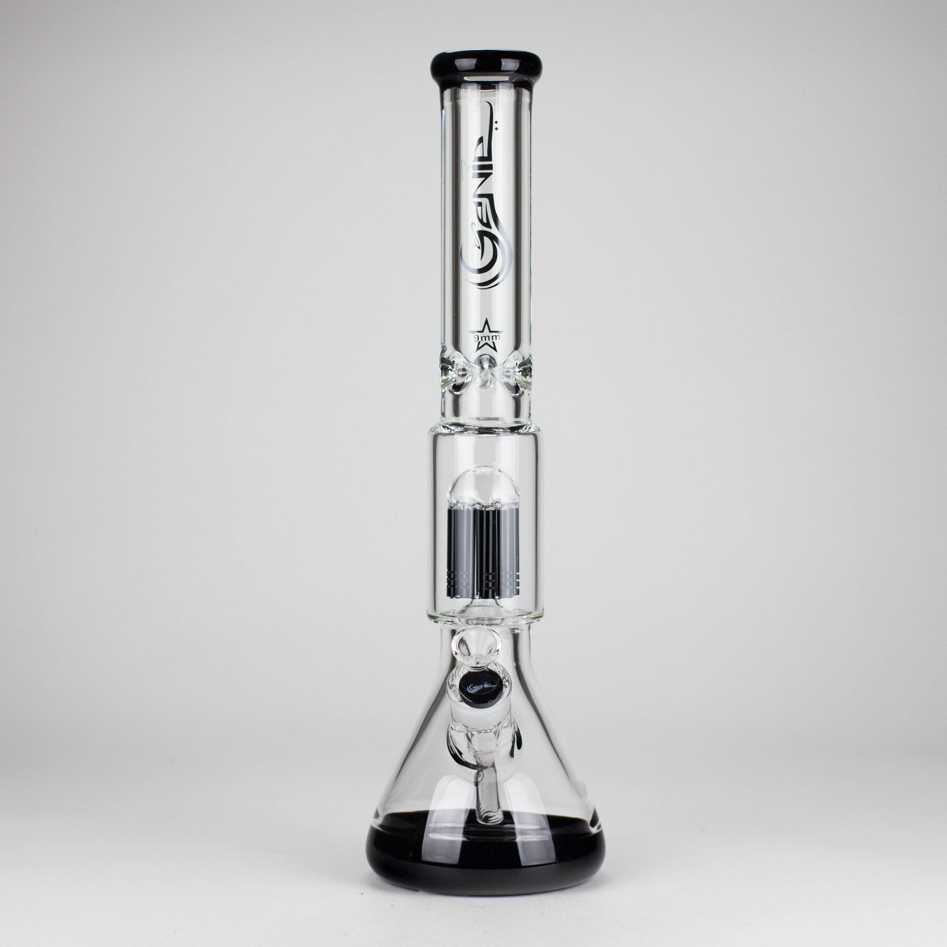 Enjoy powerful performance and sleek design with the Genie 17.5-inch Glass Bong, crafted from premium 9mm thick borosilicate glass. Featuring a 10-arm tree percolator, this bong delivers maximum filtration for smooth, cool, and flavorful hits.