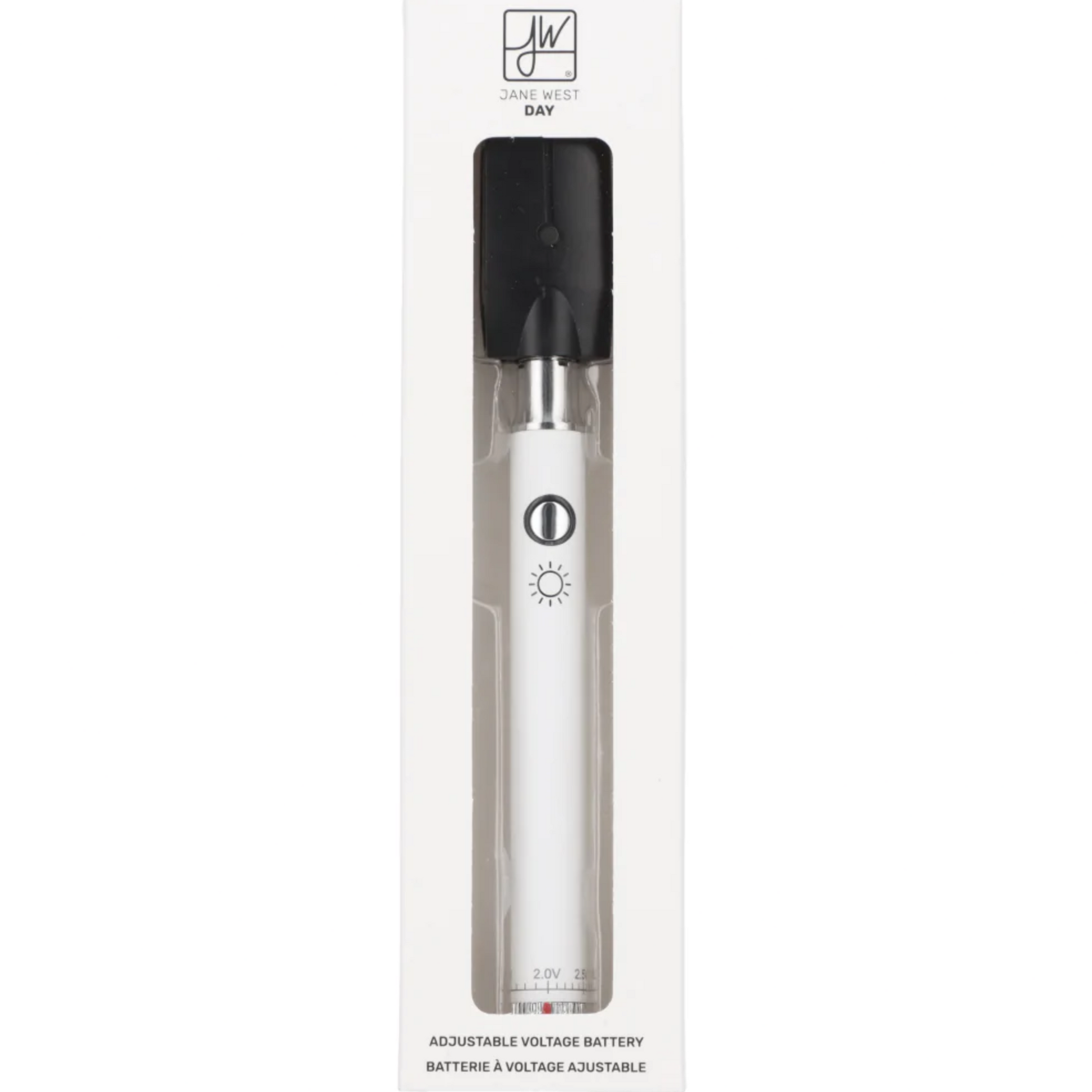 The sleek Jane West Day 510 Vape Battery is designed with compatibility for a variety of 510 thread cartridges. Equipped with a variable voltage dial, a centrally located power button, and our recognizable sun icon for selecting your preferred Day cartridge, this battery is a must-have accessory for your vaping needs. Simply attach your cartridge, power on with the button, and adjust the temperature using the dial on the base. This battery also comes with a USB charger base in a unique geometric shape, ensuring convenience for charging. Cartridge not included.
