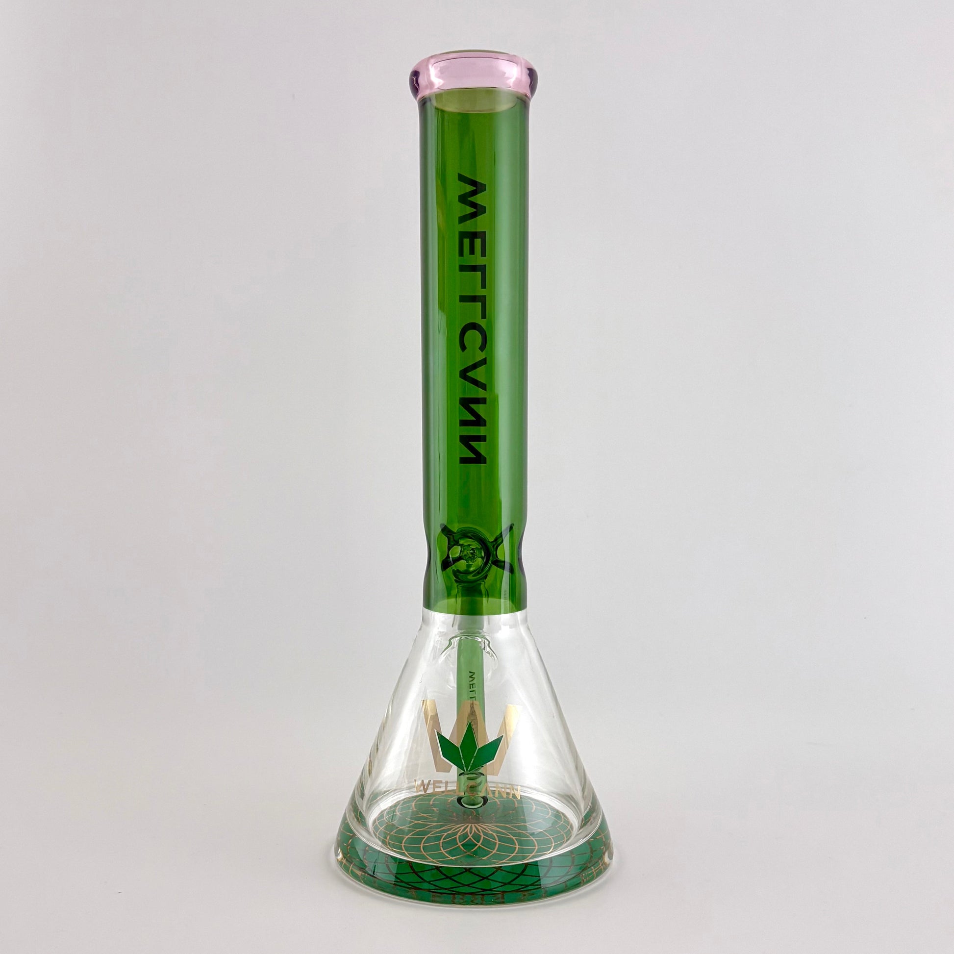 Wellcann | 14" Thickened Base Geometric Gold Beaker Glass Bong-Green